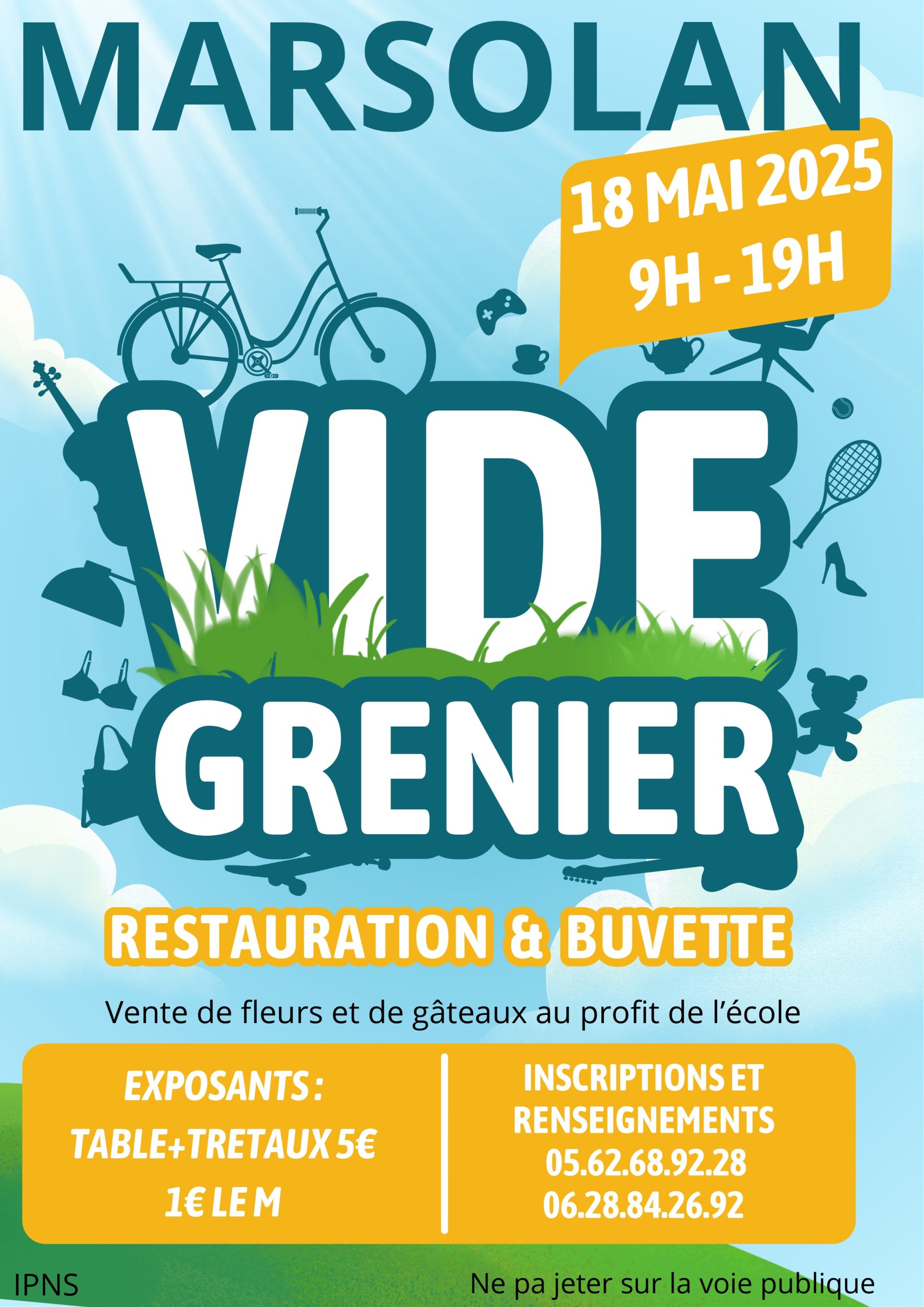 Retrouvez-nous au vide grenier de Marsolan ce dimanche 18 mai 2025 de 09h00 à 19h00